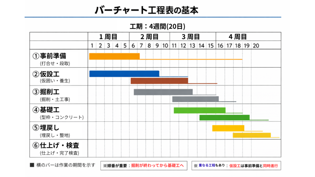 - 工程表の横棒(バー)が何を意味しているのか実はよくわかっていない人